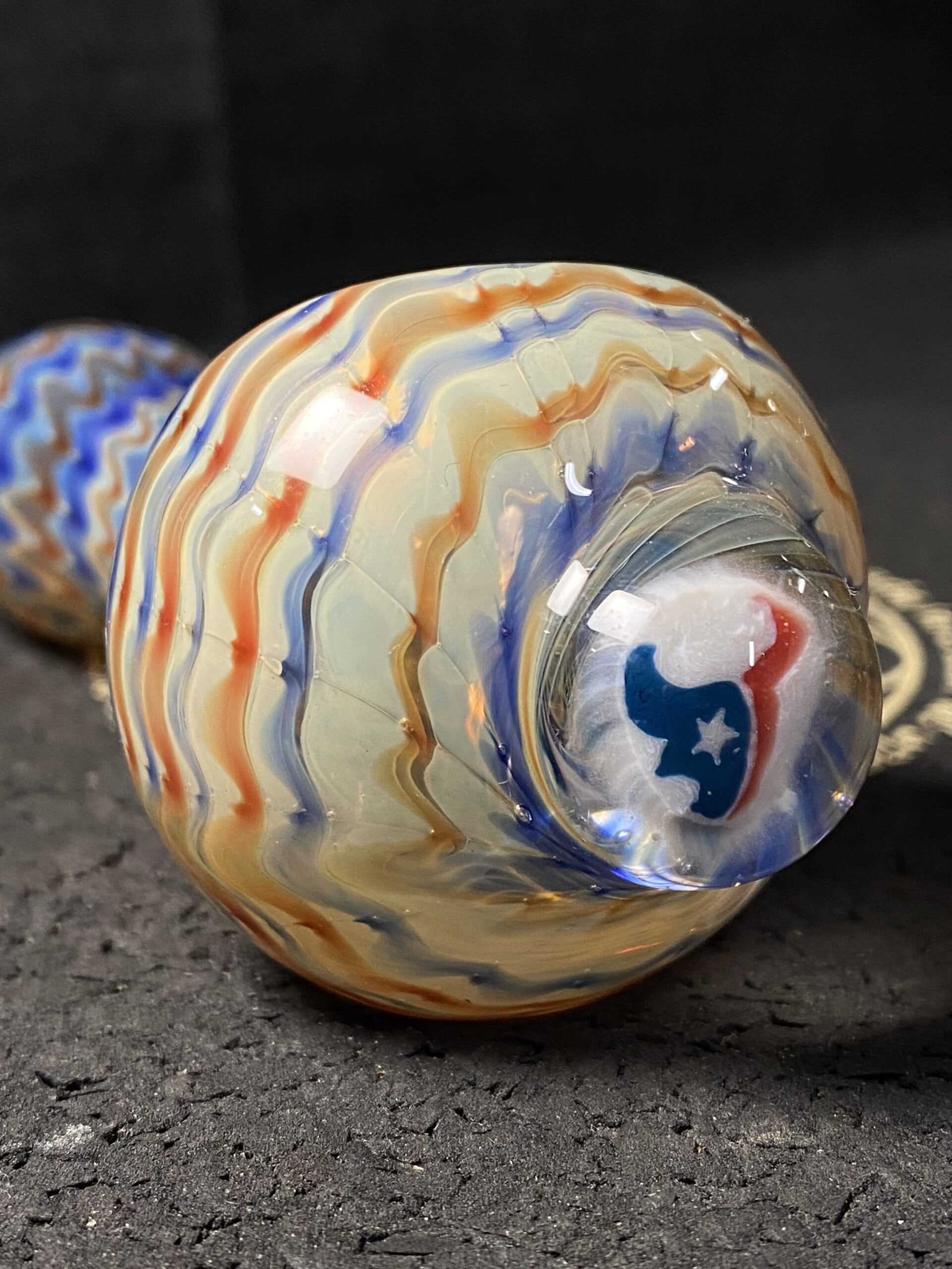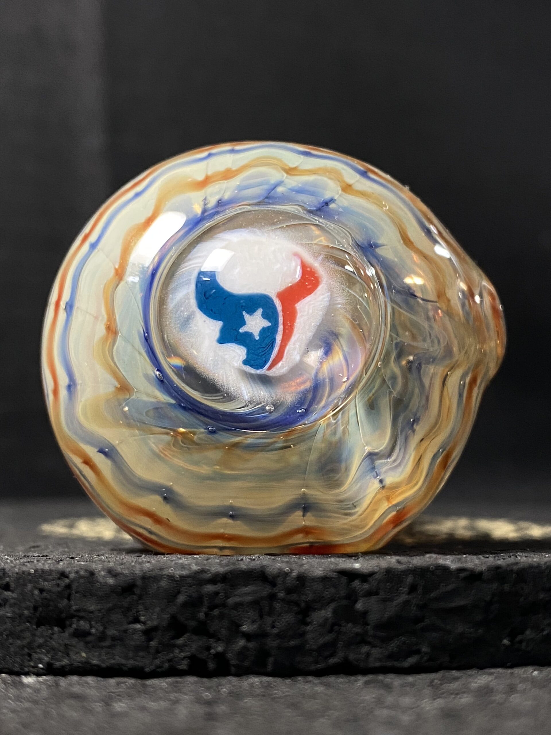 Houston Texans hand blown glass tobacco pipe blue and red highlights fumed with 99.9 pure silver for color changing effects all 32 teams available