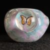 New Orleans Saints hand blown glass tobacco pipe; gold and black highlights fumed with 99.9 pure silver for color changing effects. This pipe is made in the “inside out” style, with beautiful gold and black twisty cane spun through the head, with gold, black and white stringers throughout the body. It features a New Orleans Saints logo on the front, an NFC logo on the side, an opal on the neck, several twisty cane highlights, and clear marbles from head to toe. All 32 teams available.